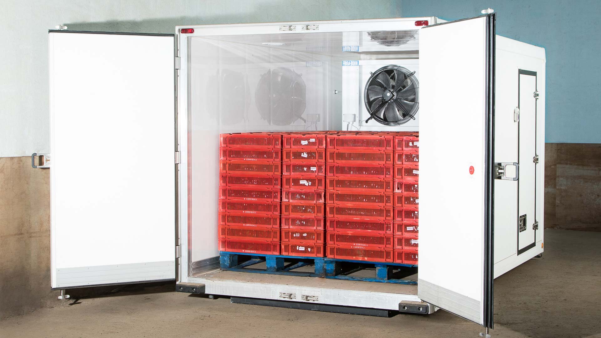 Kenmerkend voor de koelcellen van Gray & Adams zijn de afmetingen van 15 meter lang en 3 pallets breed. Ze zijn geconstrueerd met dezelfde vijfelements-panelen die ook in de trailers van Gray & Adams worden gebruikt.