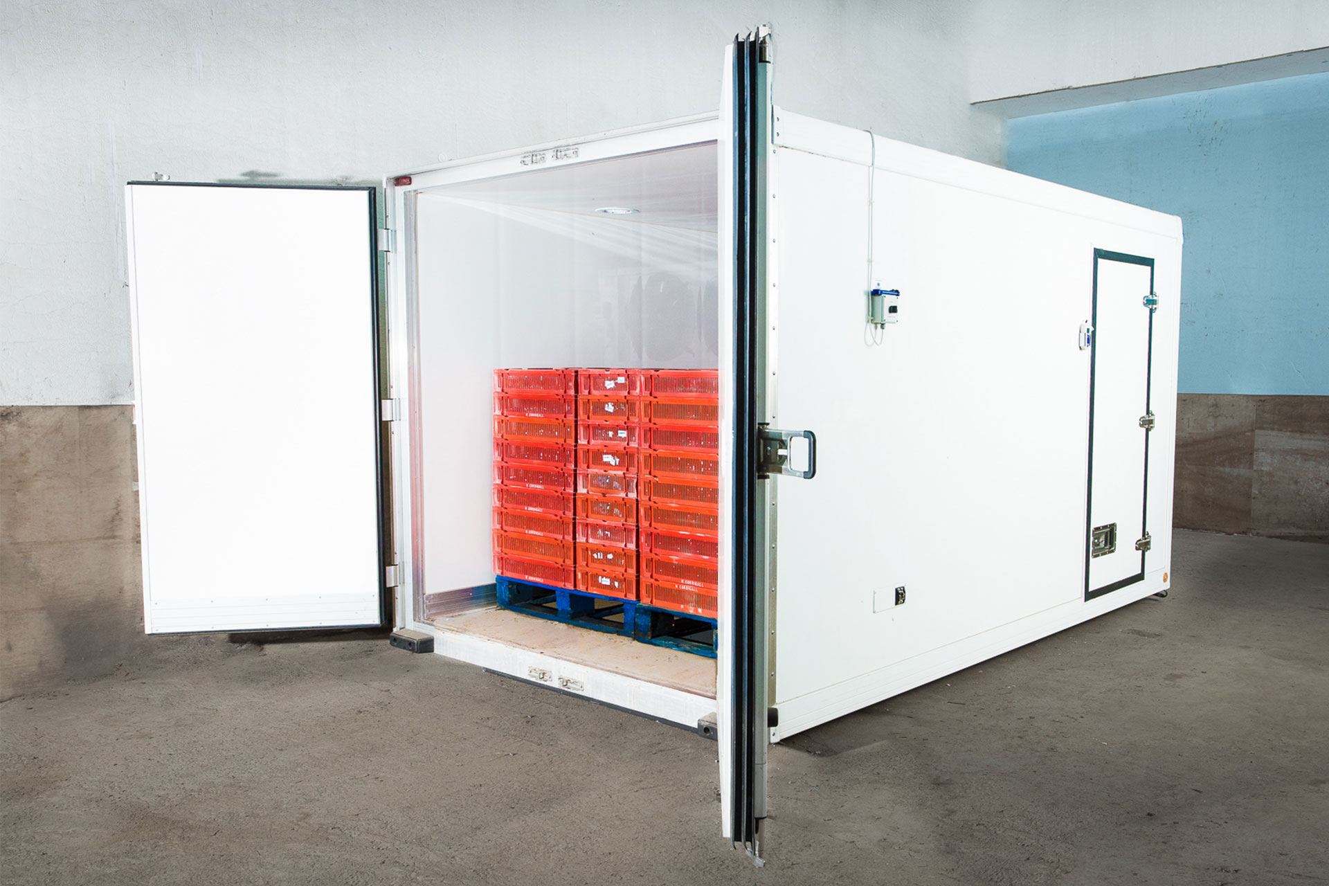 - De GVK-afwerking (GRP) aan de binnen- en buitenzijde zorgt voor niet-poreuze, eenvoudig te reinigen oppervlakken. Daarnaast is er een breed scala aan temperatuurregistratieapparatuur beschikbaar.